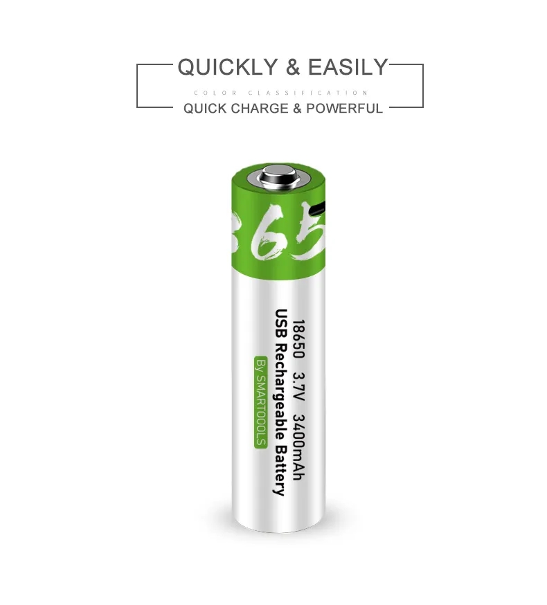 18650 Lithium-ion Type-c usb rechargeable battery 3.7V Model Number: 18650 Material: Lithium-ion battery Charging Method: Type-C usb cable Charging Voltage: 5V Norminal Voltage: 3.7V Typical: 2000mAh Diameter: 18 mm Height: 65 mm Weight: 43 (+-0.5)g Charging time: 1 hour (+-0.5) LED Indicators: Blink when charging,Stay on when full charged Short-circuited/over-flowed/over-charged/over-discharged protection: YES