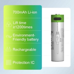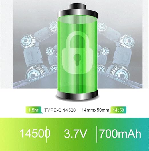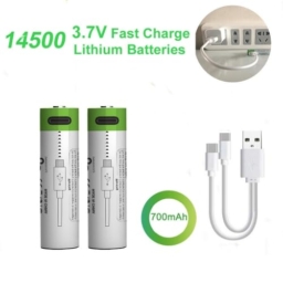 14500 Lithium-ion Type-c usb rechargeable battery 3.7V Model Number: 24500 Material: Lithium-ion battery Charging Method: Type-C usb cable Charging Voltage: 5V Norminal Voltage: 3.7V Capacity: 700mAh Size: 14*50mm Weight: 17(+-0.5)g Charging time: 2 hours (+-0.5) LED Indicators: Blink when charging,Stay on when full charged Short-circuited/over-flowed/over-charged/over-discharged protection: YES