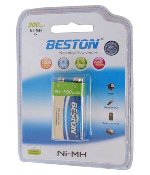Introducing the Beston 9V 300mAh Ni-MH rechargeable battery, a reliable and long-lasting power solution for your high-tech devices. This battery is designed to provide consistent performance across a wide range of applications, including meters, microphones, telecontrollers, and toys. With a capacity of 300mAh, you can enjoy extended usage times, reducing the need for frequent replacements. Crafted with high-quality Ni-MH technology, this battery is rechargeable, making it an economical and environmentally conscious choice. Experience the convenience and dependability of the Beston 9V 300mAh Ni-MH rechargeable battery for all your power needs.