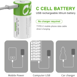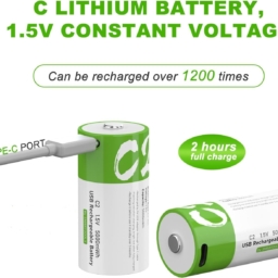 Power up your devices with these innovative 1.5V C-size rechargeable batteries, featuring a generous 5000mWh capacity. The convenience of USB Type-C charging eliminates the need for specialized chargers, making these batteries perfect for both home and travel use. Each battery in this 2-pack delivers consistent power output and can be recharged multiple times, helping reduce battery waste. These C2 batteries are compatible with various devices that traditionally use C-cell batteries, from flashlights to electronic toys. The built-in USB-C port makes charging straightforward and familiar, while the robust construction ensures reliable performance. Whether for emergency preparedness or daily use, these rechargeable batteries offer a practical solution for your power needs.