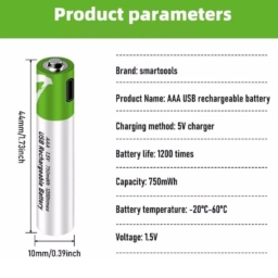 - AAA Lithium-ion Type-c usb rechargeable battery 1.5VModel Number: AAA