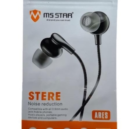 Experience superior audio quality with these MS Star wired in-ear headphones. Featuring powerful drivers that deliver pure bass sound, these earphones are designed for immersive music listening. The premium metallic finish adds a touch of sophistication, while the ergonomically angled earbuds ensure a comfortable fit during extended use. The built-in microphone allows for crystal-clear voice calls, and the convenient one-button multi-function remote lets you control your music and calls with ease. The tangle-resistant cable ensures hassle-free usage, while the standard 3.5mm audio jack provides broad compatibility with various devices. These headphones strike the perfect balance between style, comfort, and functionality, making them ideal for daily use whether you’re commuting, working out, or relaxing at home. The snug-fitting earbuds provide good noise isolation, allowing you to focus on your audio content without distraction.